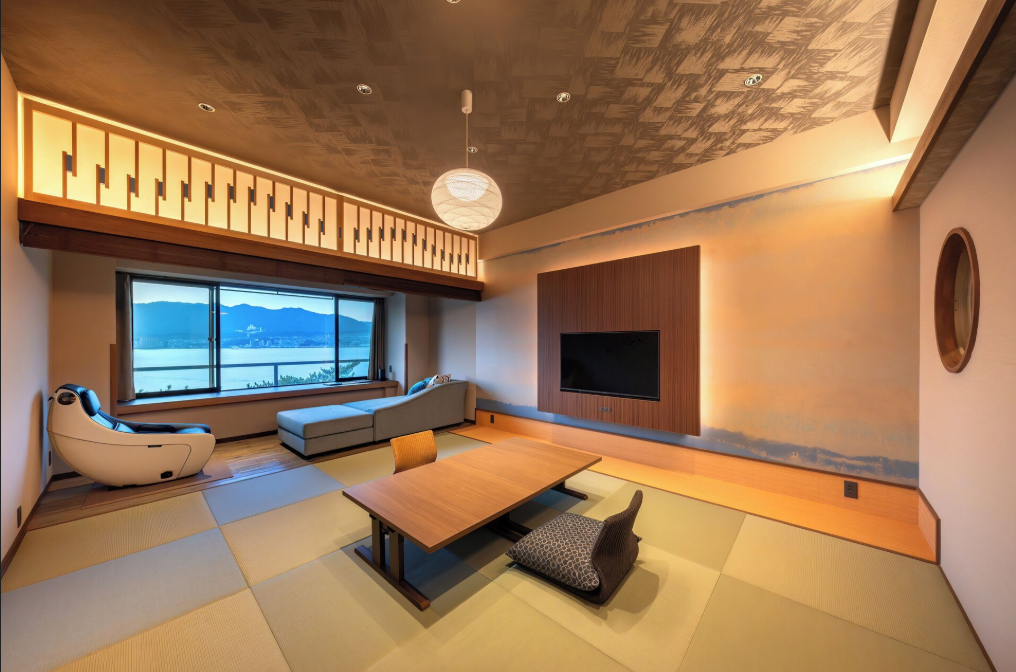 - [Private Onsen & Rooftop Lounge] A popular inn featuring a rare natural hot spring (Miyajima Shio-yu) sourced directly on the island. Guests can enjoy a private rooftop lounge with complimentary drinks and snacks while taking in the breathtaking views of the sea and the Great Torii Gate.