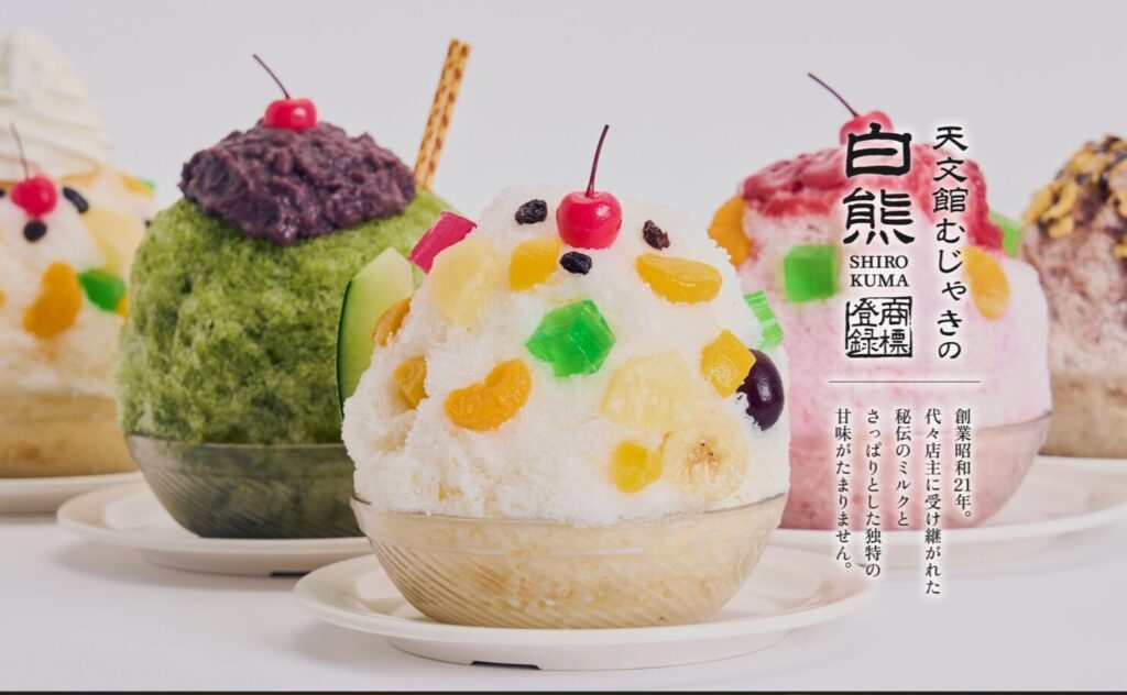 - Dulce local «Shirokuma»: Este postre de hielo raspado cubierto con abundante leche condensada y fruta es algo que no se puede perder. «Tenmonkan Mujaki», la tienda donde se dice que se originó, es un lugar esencial y popular.