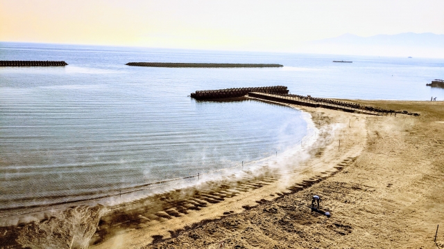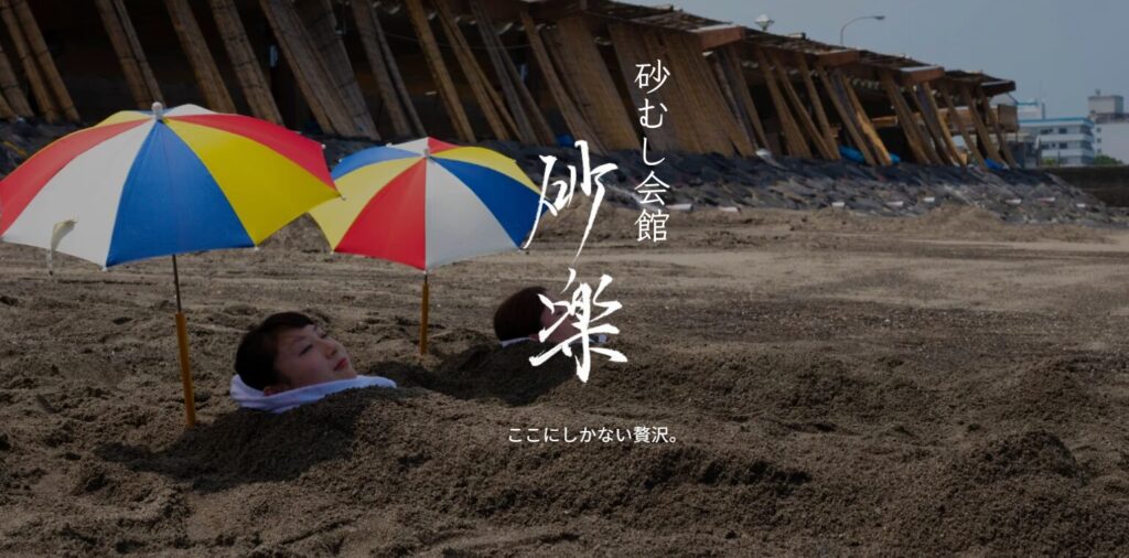 - Baños de vapor de arena de Ibusuki: En Ibusuki, situado al sur de Kagoshima, puede experimentar los «baños de vapor de arena», donde su cuerpo es enterrado en arena costera calentada por la energía geotérmica volcánica.