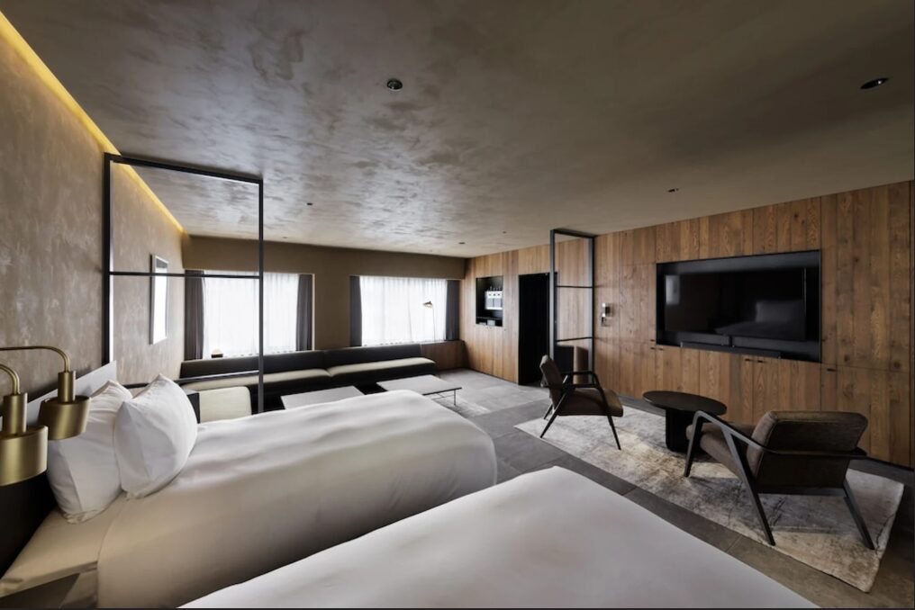 - L’ambiance : Situé sur Furumonzen-dori — le premier quartier d’antiquités de Kyoto — cet hôtel de charme ne compte que 15 chambres. Produit par un marchand d’art de longue date, le concept est « séjourner dans un musée. » Des œuvres d’art authentiques du Japon et de l’étranger sont exposées dans les chambres et les couloirs. Avec des plafonds de 3 mètres de haut et les meilleurs draps italiens, il promet une expérience sensorielle de confort ultime et de beauté artistique.