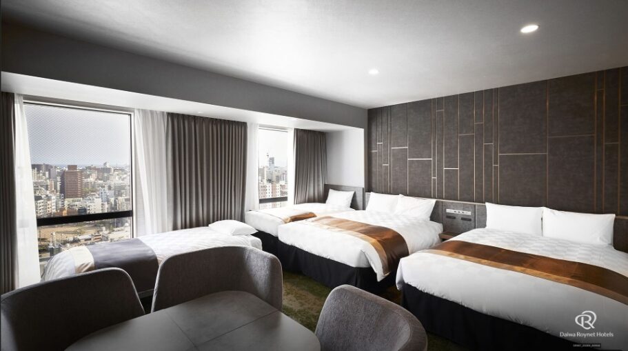 - L’ambiance : [Un espace sophistiqué et haut de gamme directement relié aux centres commerciaux] Cet hôtel 4 étoiles a ouvert ses portes en 2022. Situé au sein du complexe « CenTerrace Tenmonkan », il offre un emplacement imbattable pour le shopping et les gourmets. Les vues depuis le restaurant au 15ème étage sont spectaculaires, promettant un séjour confortable et premium.