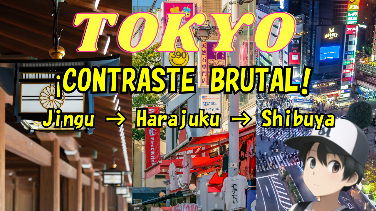 - Texto:¡Hola a todos! Soy KISAKI. Gracias por ver mi video de YouTube, “Tokyo’s Crazy Contrast: Jingu → Harajuku → Shibuya” (El Contraste Extremo de Tokio).Este artículo es una “Lista de Acciones” que recopila las fascinantes curiosidades, los consejos prácticos y los enlaces esenciales que necesitarás para planificar tu propio recorrido por el increíble contraste del lado oeste de Tokio.
